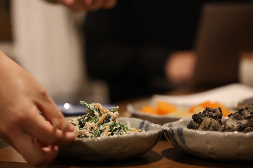 出てくる料理はどれも和テイストのものが中心でありながら、味付けや些細な風味がイタリアと中華の空気感を醸し出す。とはいえ、みゃあらくで提供されるメニューは留まることを知らず、予算感とちょっとした要望を伝えれば、大抵それに見合ったものが運ばれてくる。異国のメニューですら許容範囲内というのだから恐ろしい。